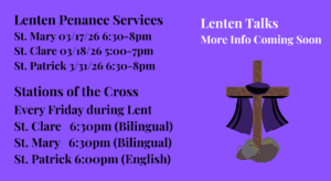 11:30 a.m. – 12:20 p.m. – St. Clare’s